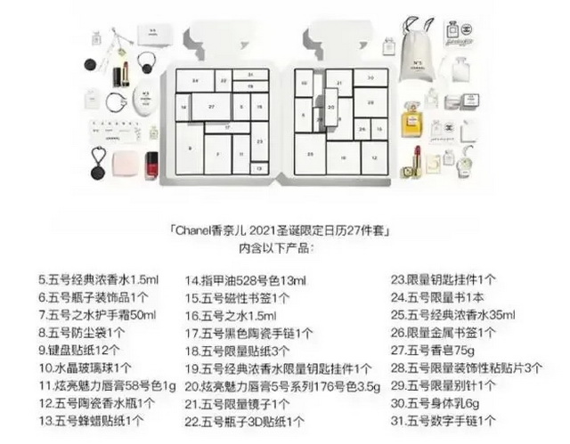 近日,香奈儿推出了自己的“圣诞倒数礼盒”,吊足了消费者的胃口。售价6000多,限量1000个。现在的奢侈品牌也想通过盲盒抓住年轻人的心吗?