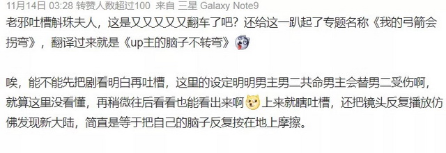 之后,做这类视频的博主变得越来越多,吐槽明星也成为了新的“流量密码”。吐槽从围绕烂剧、烂电影,逐渐演变成了针对流量明星。只要是流量艺人主演的作品,就进行无差别吐槽。其中不少视频内容敷衍,吐槽程式化,吹毛求疵放大戏中的某个细节大说特说。