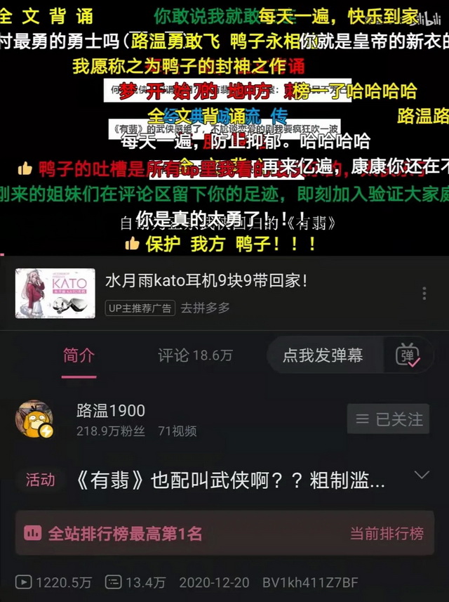 其中,路温1900就凭借吐槽《有匪》得视频获得了千万播放量,在影视区的影响力堪称“一步登天”。预想中被粉丝攻击的场面并没有出现,路温反而因为视频中犀利的言辞,精准的槽点狙击以及有理有据的分析而受到了网友的“保护”,弹幕和评论中大多都是“前排保护UP”的字样。