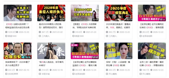 和老邪一样,许多UP最初吐槽时,选择的都是实打实的烂剧,新出的剧并不是每部质量都很烂,都有诸多的槽点可供视频制作,因此UP们只能选择一些很糊的烂剧或者比较老的烂剧来吐槽,并不能带来很高的流量。为了维持热度,创作者逐渐将目光聚焦到了流量明星和“饭圈”身上。