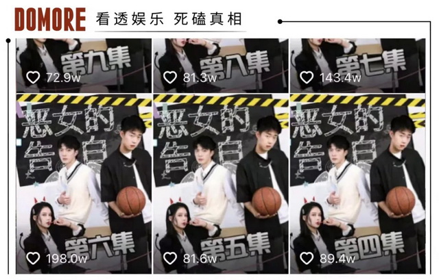 博主“放扬的心心”从2018年起,就陆续推出情感剧情内容。2019年初有连贯剧情的微短剧内容《机器人女友心心》是账号涨粉的开始,后者在抖音上每集点赞数基本在 50~100 万之间;今年爆款短剧《恶女的告白》的作者姜十七,从2019年便在发布剧情类情感内容,点赞数破百万是常有的事。