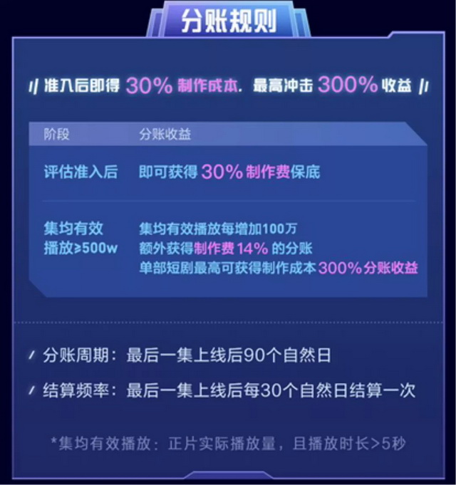 如果是资深的短剧创作者,“千万爆款剧乐部”有更为丰厚的奖赏。这一品类不仅要求创作者粉丝数超过200万,还需要其有影视作品或短剧创作经验。集均播放量超3300万的《恶女的告白》,就在扶持计划的激励下,将300%制作费收入囊中。