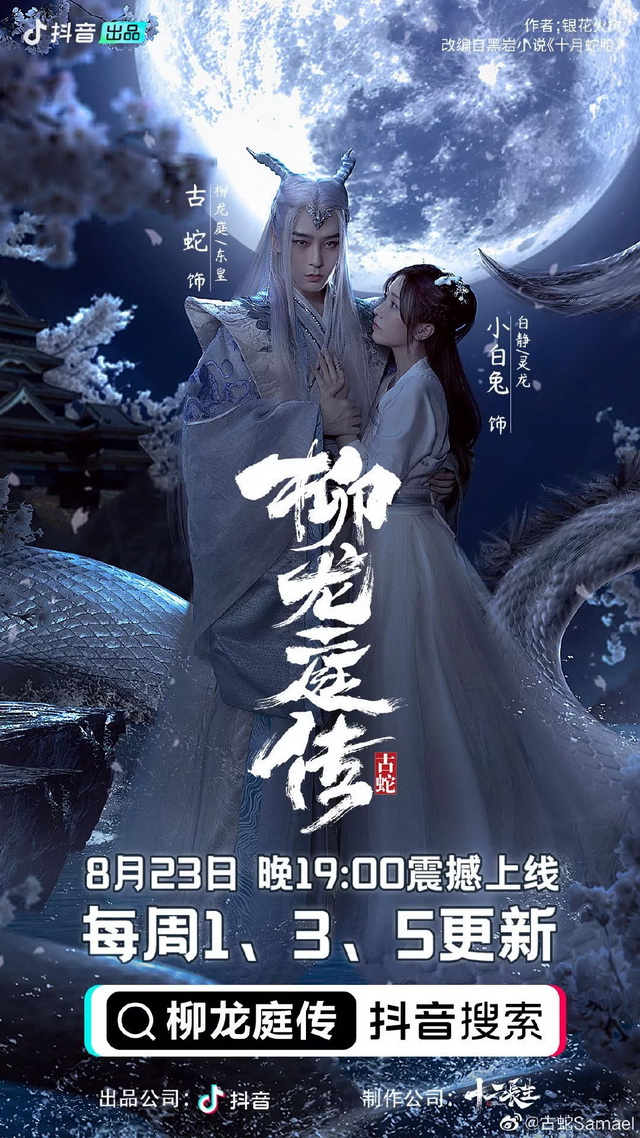 在自有账号中,达人也通过短剧也形成了人格化的IP。姜十七的“恶女人设”深入人心,粉丝们期待“恶女”在更多故事里延续;《柳龙庭传》的古蛇夫妇通过一部部古风奇幻短剧,占住了竖屏短剧奇幻古风类型的头部位置。这些短剧的破圈,也让创作者们突破了达人、网红的标签,有了更多的属性。