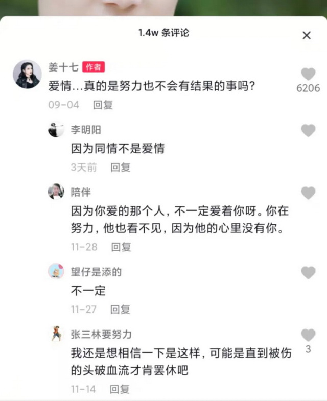 创作者还能在频繁的互动中与用户建立更亲密的关系,让用户对人设本身建立情感。在《恶女的告白》下方,不少观众激烈地与姜十七讨论着“爱情是努力就能有结果的事情吗”“你们有没有为了喜欢的人做自己不喜欢的事”等话题。