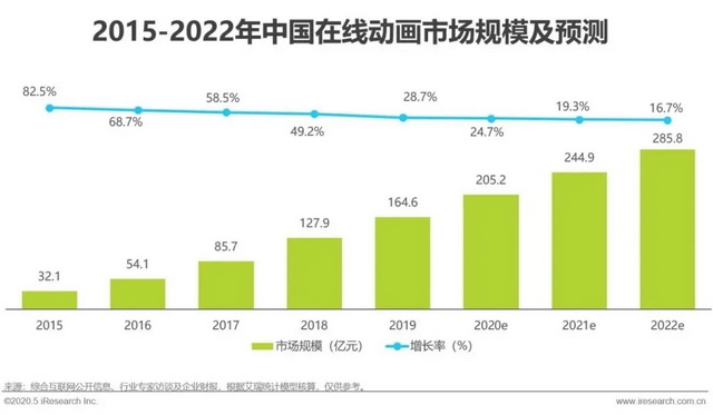 偏偏从2015年左右起,国内在线动画市场迎来一轮爆发,艾瑞咨询《2020年动漫产业研究报告》显示,连续数年市场规模增占率维持在50%以上,若干具备竞争力的新IP相继诞生。