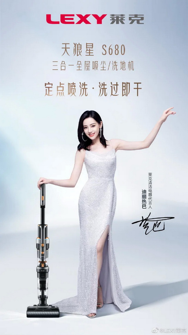 12月8日,迪丽热巴成为LEXY清洁电器全新代言人。