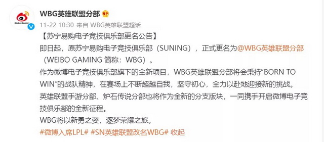作为月活用户超过5亿的中国领先社交媒体平台,微博深入电竞产业链之中,先后在2020年8月、2021年3月和11月宣布收购KPL王者荣耀职业联赛、PEL和平精英职业联赛和LPL英雄联盟职业联赛的战队。短短一年间,在国内三大顶级电竞赛事中,都能看见微博(WBG)的身影,通过电竞资产的全面布局,将Z世代对电竞的兴趣点,反哺到平台生态中。