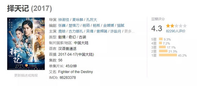 集合当红小花和小生的古偶剧是豆瓣低分重灾区,《斛珠夫人》5.1,《有翡》5.5,而流量+古偶的序列里,还有很多剧集在排队中,包括杨洋主演的《且试天下》、肖战主演的《玉骨遥》、吴磊主演的《星汉灿烂》等等。