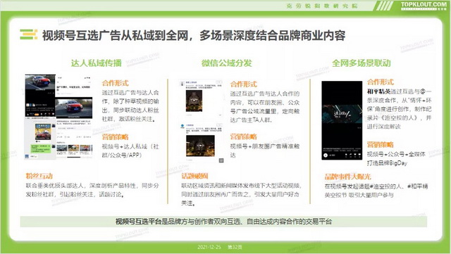 视频号不仅全力培育内容,形成独特的内容体系,在营销模式上也基于微信生态基础形成了新的独特商业生态。