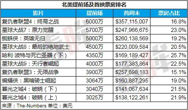 《蜘蛛侠:英雄无归》在提前场就席卷5千万美元,足以排进影史前三名,略逊于《复仇者联盟4:终局之战》(6千万美元)和《星球大战7:原力觉醒》(5700万美元)。从零点场就爆发出巨大能量,《蜘蛛侠:英雄无归》注定将横扫纪录。