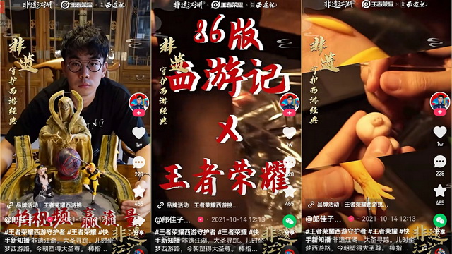 在磁力引擎的助力下,他实现了“梦想与现实双丰收”的愿望。在“86版西游记X王者荣耀”视频中的文案,他写道:“非遗江湖,大圣寻踪。儿时坐梦西游路,今朝塑得大圣尊。棒指妖魔灭,明眼善恶辨,通天大道任逍遥。”