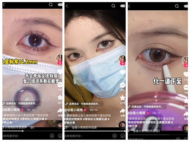 戴美瞳的化妆是没灵魂的妆容,在内容创意方面,以”日常出门戴口罩妆“为选题,切入到眼妆,巧妙地将可啦啦土星粉子美瞳搭配口罩妆容,同时抓住了近视女生不戴美瞳会眼睛无神的痛点,突出产品优势,激发消费者的购买欲。这条视频很好地将内容和产品特性、优势进行融合,在种草的过程中,学会化妆小技巧,干货满满。该视频最终数据统计,累计播放量达到100万+,点赞数3万+,整体传播效果让品牌十分满意。