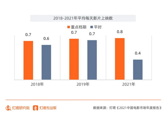 根据灯塔《报告》,2021年选择在非热门档期上映的影片日均数量首度跌至0.4部,这一数字背后也凸显了行业在疫情时代下的一个隐忧,即在热档扎堆上映、冷档无人问津的情况之下,观众的观影习惯正在逐步发生变化。