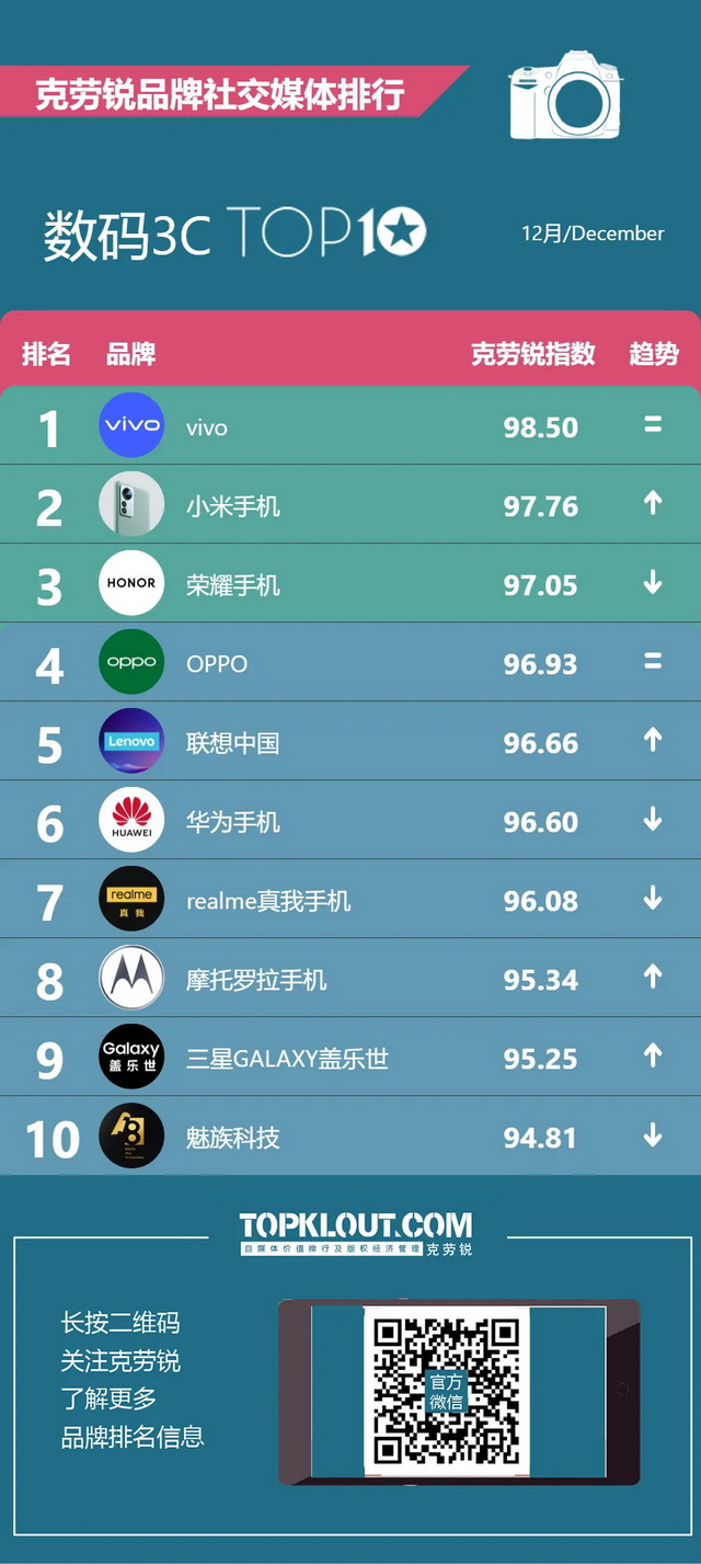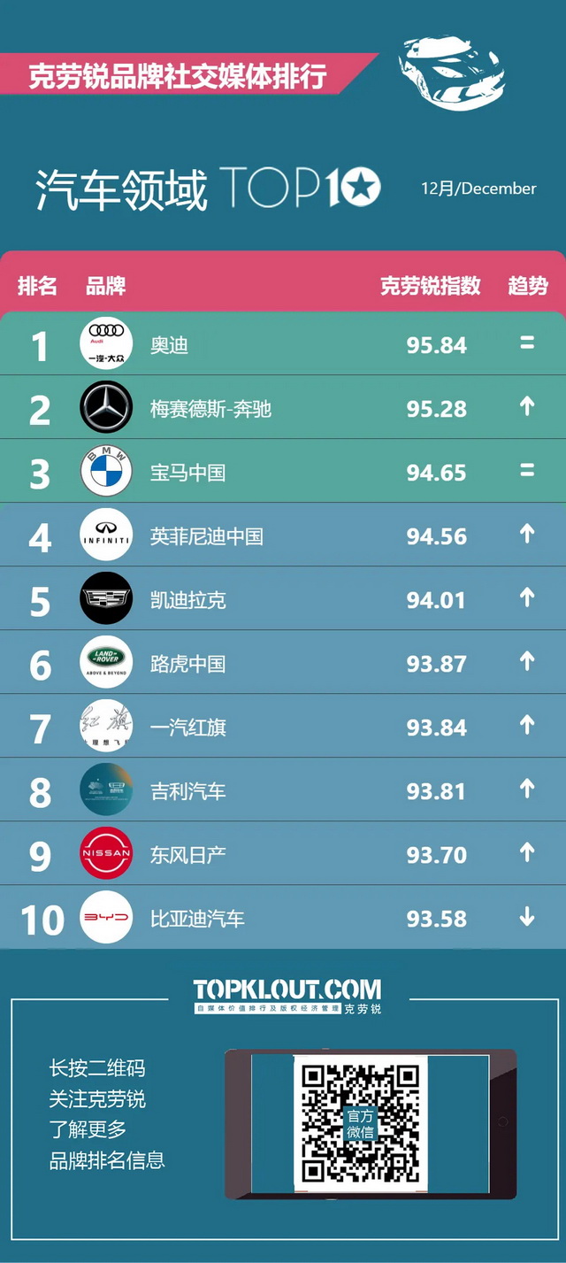 克劳锐独家发布《品牌社交媒体排行榜》,更多垂类、更细划分,全方位、多维度综合评定品牌影响力。快一起来看看吧~