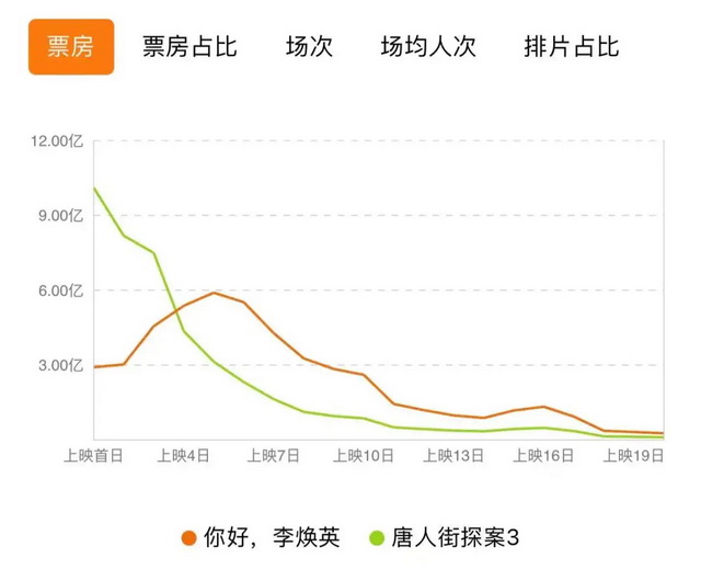 过去多年的春节档总有一个“魔咒”:映前热度和预售最高的片子,有很大的概率保不住冠军地位。比如去年的《唐人街探案3》,首日票房超10亿,是第二名的《你好!李焕英》的3倍有余,但从大年初四开始,单日票房便遭到了反超。