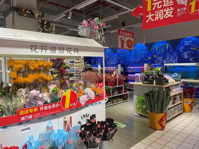 大润发打出生活方式这张牌,是在构建体验化购物的场景。一方面鲜花和水果一样,都是相对低价刚需的引流商品,另一方面,传统超市往往以货量大和价格低作为卖点,但随着消费渠道的多元化,传统超市需要在货和场景上做升级。