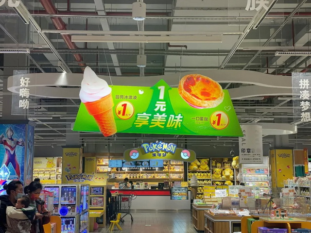 体验感不仅在于商品陈列的方式上,在这家店里,还开设了宝可梦主题休闲吧和酒吧。IP主题休闲吧可以与文创商品做呼应,另一方面也是方便带娃人群。和宜家一样,这家咖啡馆也有1元的冰淇淋、5元的美式,用极具性价比的食品起到引流作用。