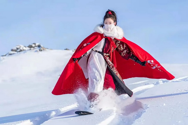 此外,社交媒体的带动也成就了滑雪运动的不断出圈。前有滑雪达人身披汉服“御板飞行”,后有四岁萌娃挑战高级赛道,还有众多“滑雪媛”身穿比基尼,把滑雪场当成最新的穿搭街拍地。