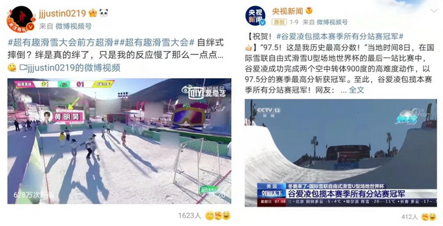 娱乐之外也不乏滑雪达人的炫技,在冬奥组委发起的#我的冰雪梦 、#冰雪奇遇记 等话题下,常能看到各种炫酷的滑雪技巧,速度和解压激发着普通用户的向往。而“四岁萌娃三周学会单双板滑雪”“11个月大宝宝踩单板滑雪”等内容则让更多宝爸宝妈带着孩子开始上雪场。