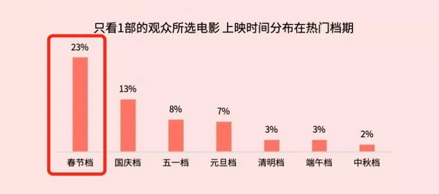 所以我们会看到,在猫眼研究院发布的2021年电影市场数据洞察报告中,在全年仅进入影院观看一部电影的观众中有23%选择在春节档完成这次观影,这样的数字从侧面印证出春节档拥有全年最多的增量观众群体,正是这些增量人群,让春节档的票房容量一再拔高。