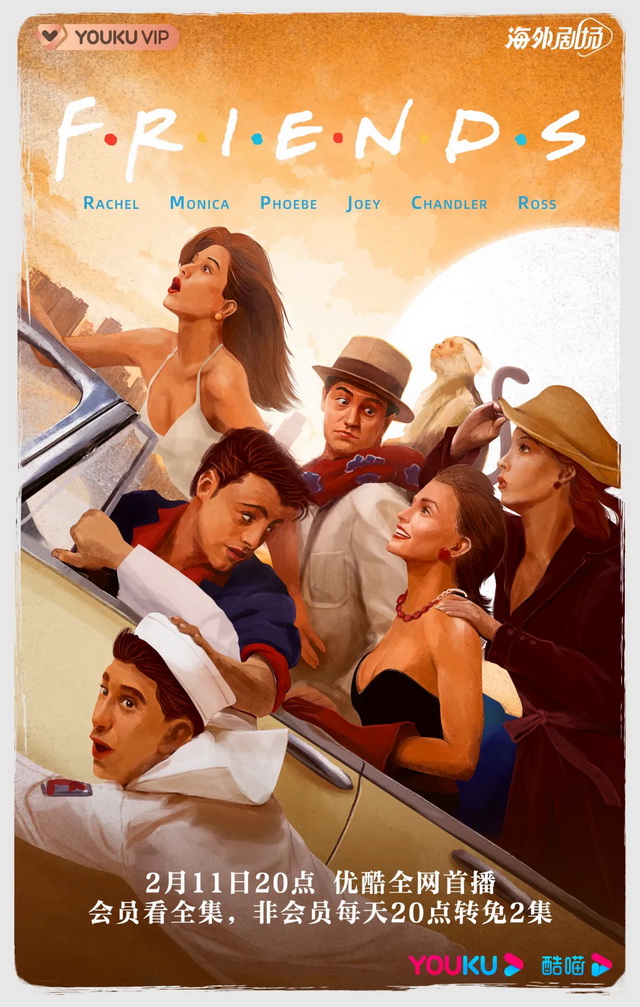他们的十年友情故事就此开始,直到今天,还没有结束。2月11日晚8点,优酷、爱奇艺、腾讯视频、B站、搜狐视频五家平台将同时上线《老友记》,并在未来十周内每周五更新一季。
