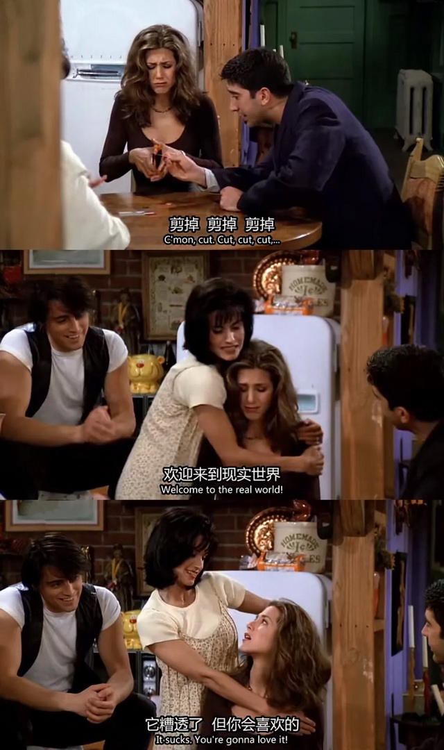 “欢迎来到真实世界,这很糟糕,但你会爱上它的。”《老友记》第一季第一集的片尾,Monica搂着刚剪完自己信用卡的Rachel,其他四人笑着看向她们。