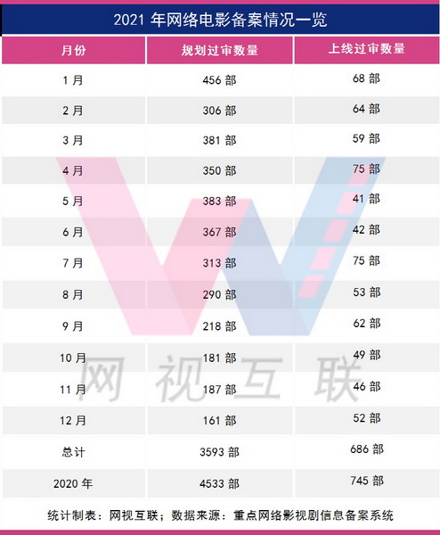 网视互联就是希望能够通过分析“备案”这个项目的源头,来拨云见日,透视2021年网络电影市场一些趋势和变化,也窥探2022年网络电影市场的一些规律和走向。