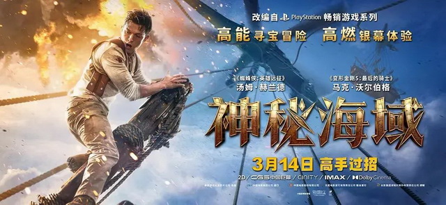 《神秘海域》改编自索尼的招牌游戏,其电影的冒险风格与《夺宝奇兵》系列相近,讲述年轻时的内森·德雷克与寻宝者维克多·萨利文搭档追寻麦哲伦宝藏的故事,两大主角分别由汤姆·赫兰德和马克·沃尔伯格饰演。