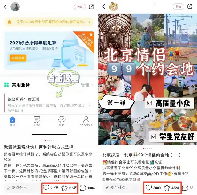 一个很有意思的现象是,小红书上很多优质的帖子,收藏数往往大于点赞数。反映出的就是内容的实用性,这也是为什么很多用户把小红书当成搜索引擎使用的原因。