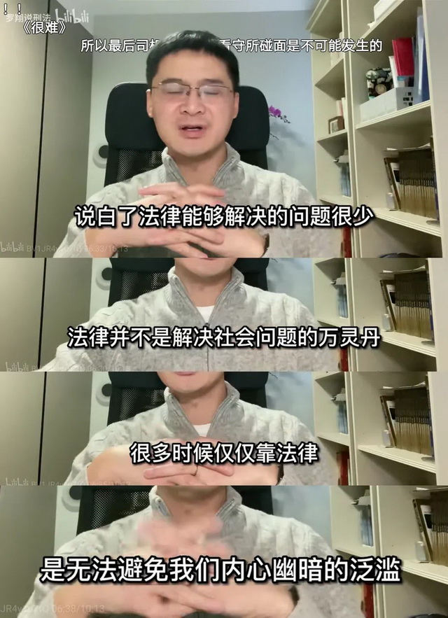 比如B站UP主@罗翔说刑法 ,用细节生动的刑法案例为用户带来专业的法律知识,案例之外还有对社会、人性与哲学的思考,传道受业解惑让点进视频的人都能满载而归。
