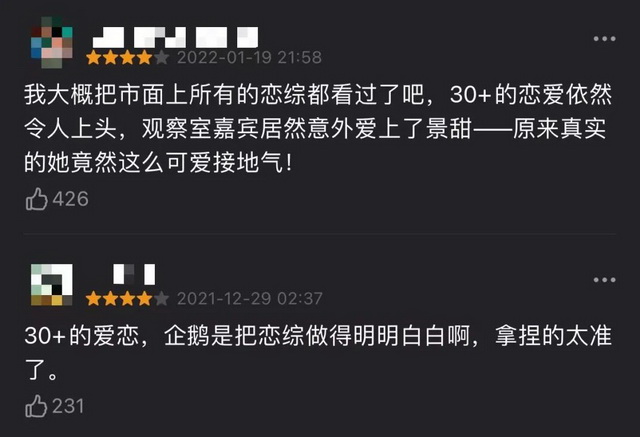 “把市面上所有恋综都看了,30+的恋爱令人上头”。在《半熟恋人》的豆瓣热评中,很多观众都在感叹30+的恋综主题的独特。