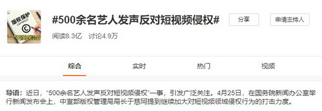 声明一经发布,短视频平台迅速做出了动作,抖音下架视频14w个,处置违规账号近1200个,快手处置相关视频达到12.5w,各平台都主动处理了多个内容版权方的投诉。