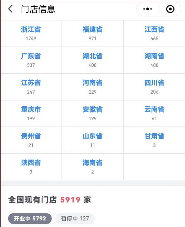与古茗定位相同的中端品牌里,同样以果茶为主要产品的CoCo,虽然加盟店并不如古茗多,但覆盖范围更广,在新疆、吉林、西藏都有不少加盟店。以烧仙草、奶茶为主打的书亦烧仙草,在店面总数上也超过了古茗。