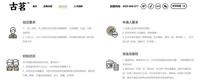 从2011年开始做起加盟的古茗,已经有一套非常成熟的打法和筛选机制:年龄在25至40周岁;一至二店时,投资者需要完全在店进行基础操作,三店及以上,投资者也需要全职负责门店经营工作;一到二店时不建议合伙。