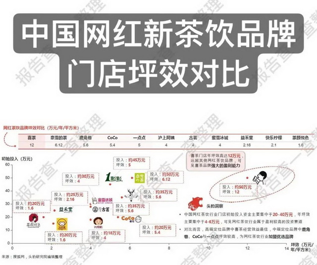 古茗除了有着冷链与多地仓储优势,其他方面的优势却并不显著。头豹研究院整理的《中国网红新茶饮品牌门店坪效对比》中,古茗的坪效与蜜雪冰城接近,却不及同样的中端品牌一点点和CoCo。