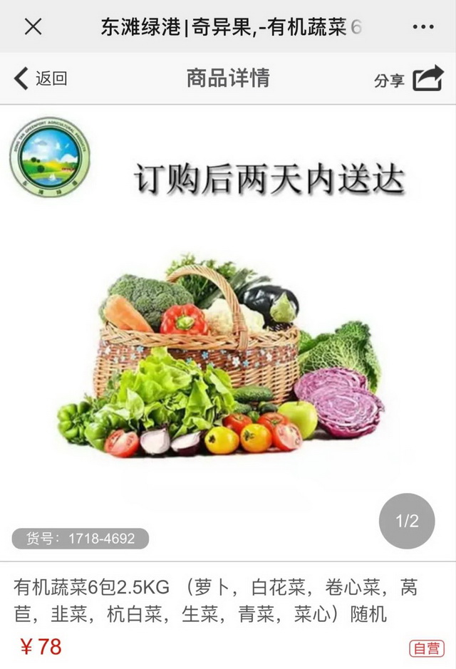 此外,一些其他领域的电商企业也加入了提供生鲜套餐的阵营。电视购物起家的东方购物在本次疫情期间联合东滩绿港农业园在其APP及小程序上线鲜蔬组合,用户可在线下单或者电话订购,但在时效性方面较生鲜电商稍差一些。