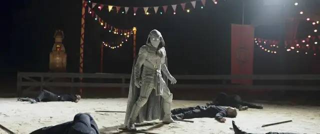 只见一片狼籍中,身披银袍的绷带男按倒一只怪物,抡拳便打,背影中尽显暴戾与狰狞——这不是B级片,而是三月底,迪士尼在自家流媒体平台Disney+上线的漫威限定剧《月光骑士》(以下简称《月骑》)。