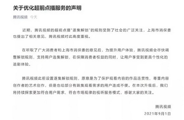 即便是“超前点播”,在去年长视频平台陆续决定中止之前,也已经经历了好几个版本的迭代。比如之前的超前点播,曾经增加过分集点播的功能。每一次商业模式的创新,都需要消费者花时间来消化。