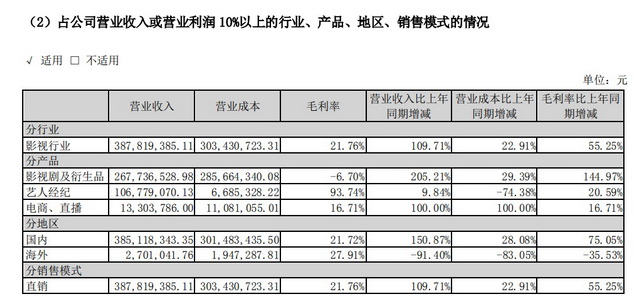 此后两年,慈文的业绩也持续亏损。2020年,慈文实现营业收入6.74亿元,同比下降42.45%;净亏损3.52亿元,同比下降313.48%。其主营业务“影视业”业务收入毛利率为-2.92%,