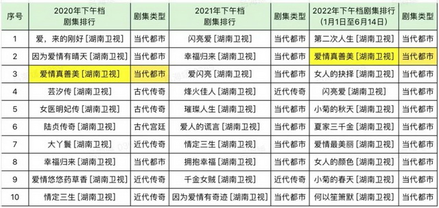 作为一部在下午时段播出,且10年前的老剧,《爱情真善美》在近三年省级卫视下午档剧集里,每年都能排到亚军。甚至放到近三年省级卫视黄金档剧集排名中,也能进入前十乃至前五。
