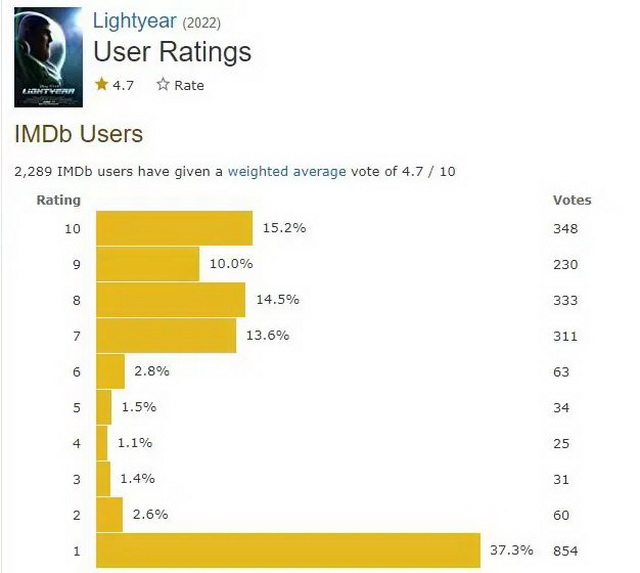 从口碑来看,《光年正传》的烂番茄新鲜度为77%,而由观众打分的CinemaScore则达到A-,属于中等偏上的层级。