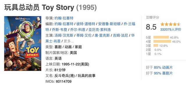 当然,皮克斯作品向来在续航上表现奇佳:前述的《玩具总动员3&4》北美开画在1.1和1.2亿美元之间,亦即最终票房系数达到3.6和3.8倍。实际上,若排除因影院停业而提前下映的《1/2的魔法》,所有烂番茄80%以上的皮克斯动画系数均不低于3.3倍。