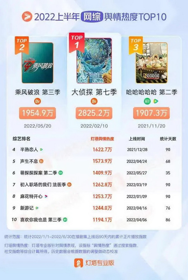 腾讯视频的《半熟恋人》也确实打响了今年素人恋综的“第一枪”,灯塔专业版数据显示,《半熟恋人》在2022上半年网综舆情热度中位列第四——这对一档没有大咖嘉宾参与、一路“裸播”的素人恋综来说,已经算是非常耀眼的成绩。