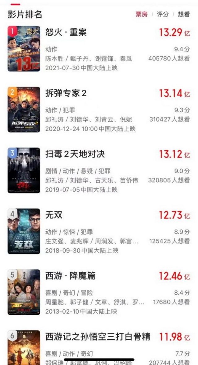 港片内地票房排名,数据来自猫眼专业版