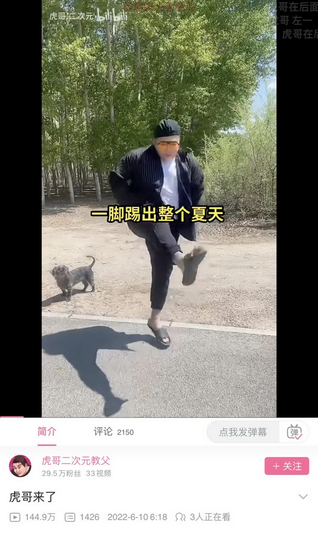 曾被平台屡次封禁的著名用户“虎哥”,在今年5月重回互联网。在他更为熟悉的平台快手,虎哥还煞有介事地拍了一段专属视频宣告自己的归来。而在抖音和他更晚才了解的B站,他的第一条视频,都复刻了那段经过无数次二创的经典作品——一脚踢出整个盛夏。