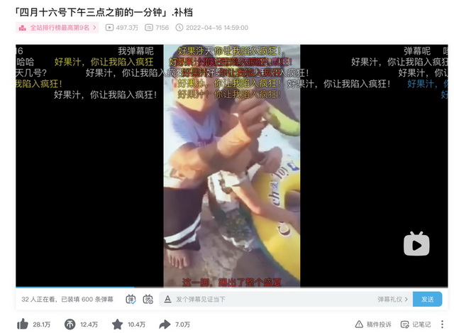 反差感带来喜剧感,紧接着,王家卫电影的台词和滤镜被无缝转接到东北往事的系列视频上。人们反复打出“好果汁,你让我陷入疯狂”的弹幕。
