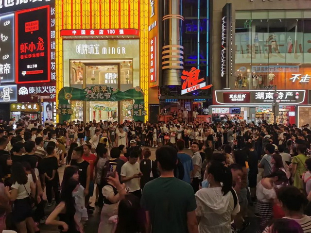 晚上从M-CITY出来,长沙城中心依然热气灼人,但远处的解放西人头攒动,显然没有什么能阻挡年轻人玩乐的脚步。