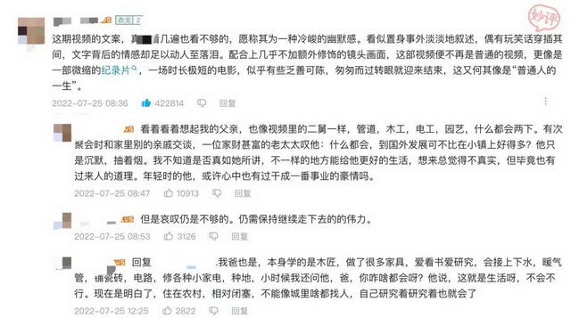 那条仅11分钟的视频中,UP主从摄影到配乐到文案,方法论随处可见。他抛弃了“家人们、拴Q、YYDS”等流行词汇,使用的是偏严肃、强文本的文案风格。为了不让观众陷入“过悲”的情绪当中,UP主还有意地穿插了一些偏喜剧性的叙事,让视频整体呈现出悲喜交集之感。