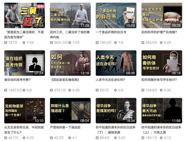 币比赞多,只有当用户对视频高度认同才会出现。“二舅”之前,UP主敖厂长和敬汉卿都曾因为他们或专业或符合B站价值观的视频受到用户的高度认可,也因此创造了700万和1300万播放量的视频。