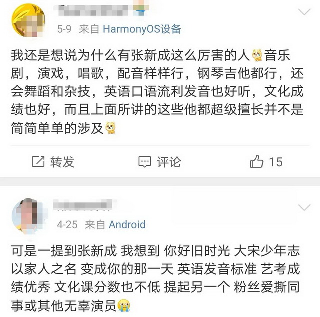 艺考时,张新成一举拿下中戏、北电、中传、上戏、军艺五校第一,被称为“艺考之神”,每到艺考季都会有考生到他微博下许愿求上岸。高考时,以560分超湖北一本分数线近30分的成绩,进入中戏音乐剧表演专业。去年,又一度因为英语口语发音标准而出圈。可以说,张新成本人的履历和他的角色相辅相成,形成正循环。